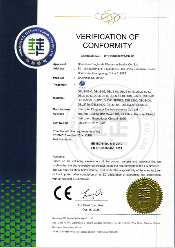 首頁->產(chǎn)品認(rèn)證->無刷驅(qū)動器CE證書